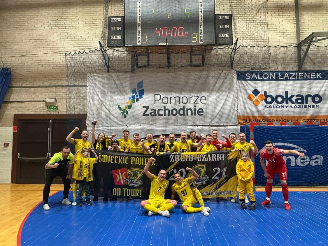 Futsal Świecie rozpoczął rundę rewanżową od wysokiej i przekonującej wygranej w Szczecinie 5:1 (3:0). Cały zespół zagrał bardzo dobre zawody, ale w ekipie ze Świecia należy wyróżnić strzelca trzech bramek Piotra Kaczkowskiego i świetnie spisującego się między słupkami Bartosza Piotrowskiego.